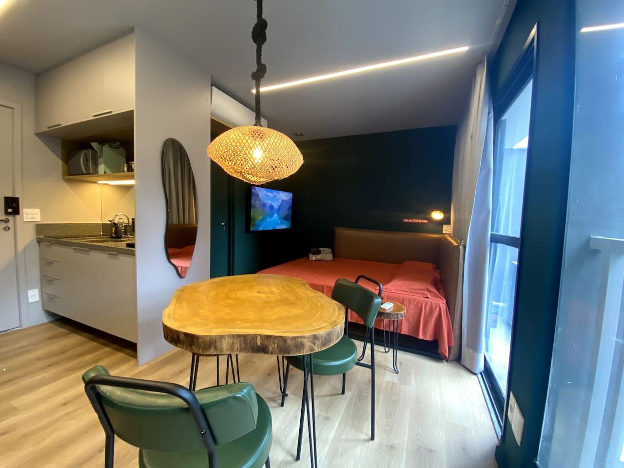 Venha se hospedar em 2 estúdios modernos e completos ao lado da Oscar Freire, perfeitos para até 5 pessoas. Ambos oferecem design sofisticado, ar-condicionado, smart TVs, Wi-Fi rápido e comodidades como piscina, academia e coworking. O Apto 1 possui cama queen NASA e varanda e o Apto 2 tem uma cozin...